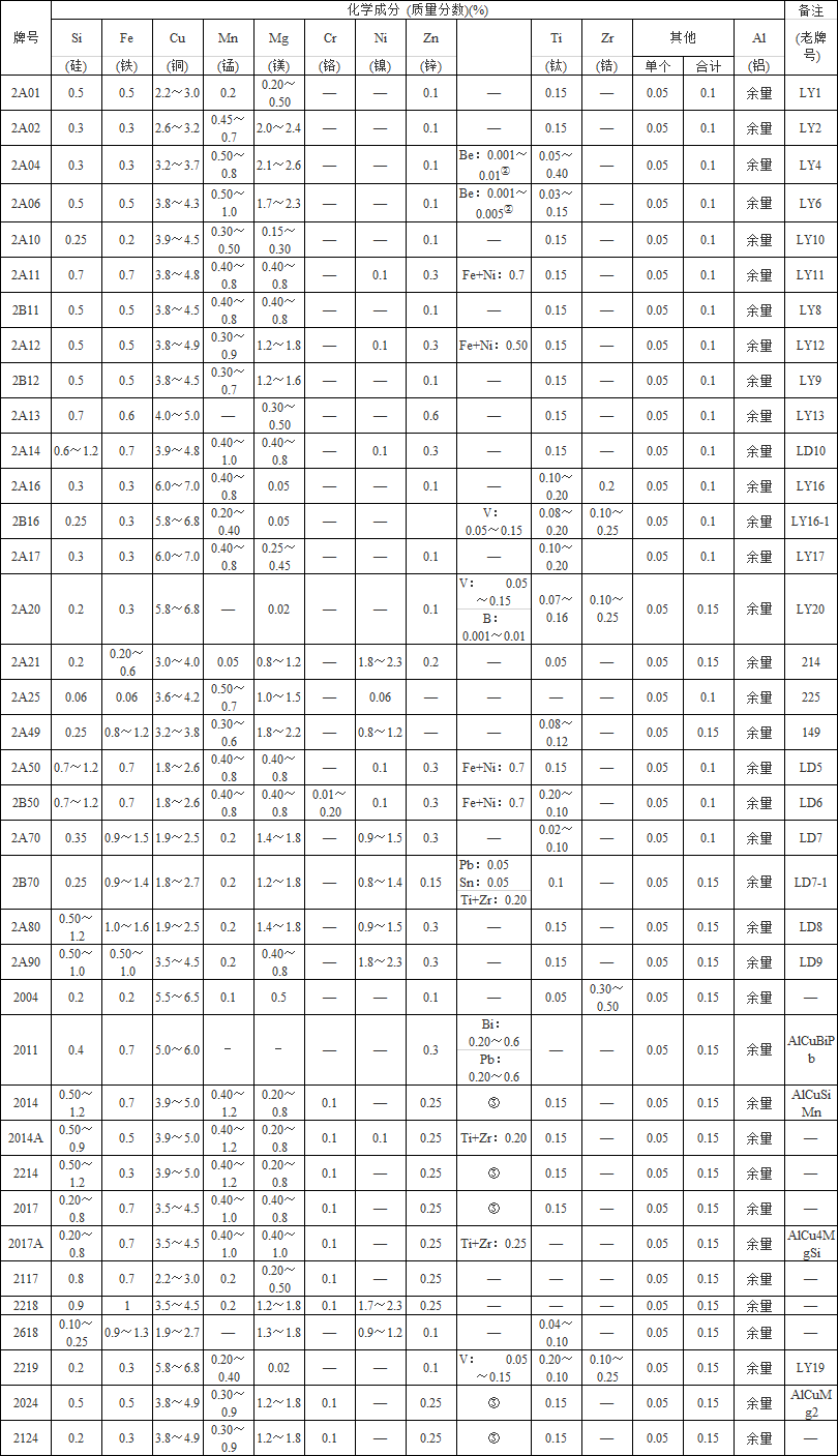 2XXX系鋁銅合金成分及性能